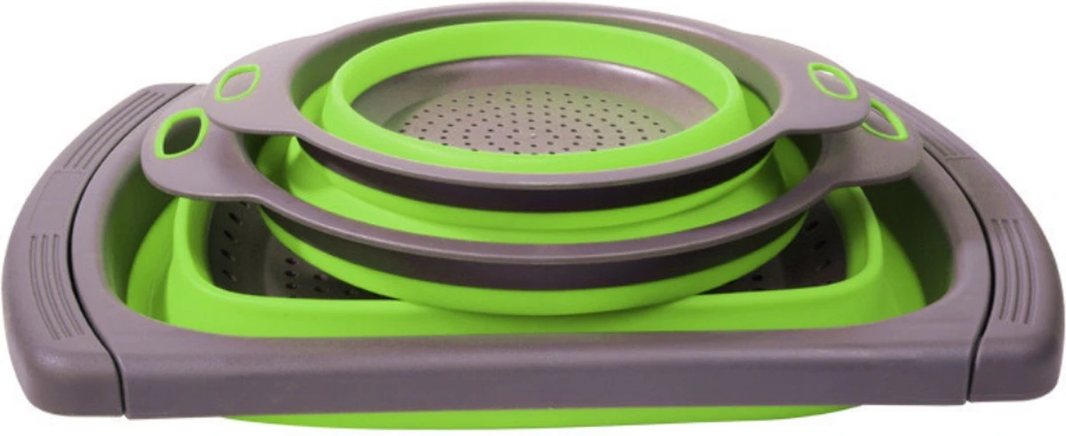 3-Delige Keuken Vergiet Set Inklapbaar Groen/Grijs