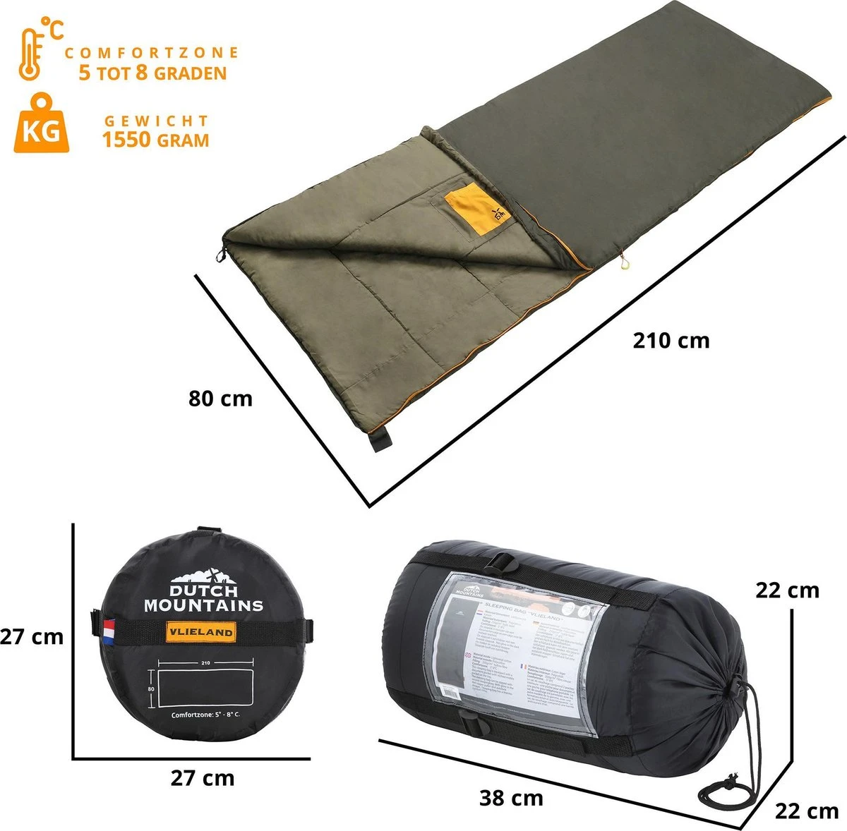Deze oer-Hollandse XL slaapzaak is aan de binnenkant voorzien van comfortabel lichtgewicht katoen dat zijdezacht op de huid aanvoelt. Licht en compact – Weegt slechts 1550 gram, compact op te bergen