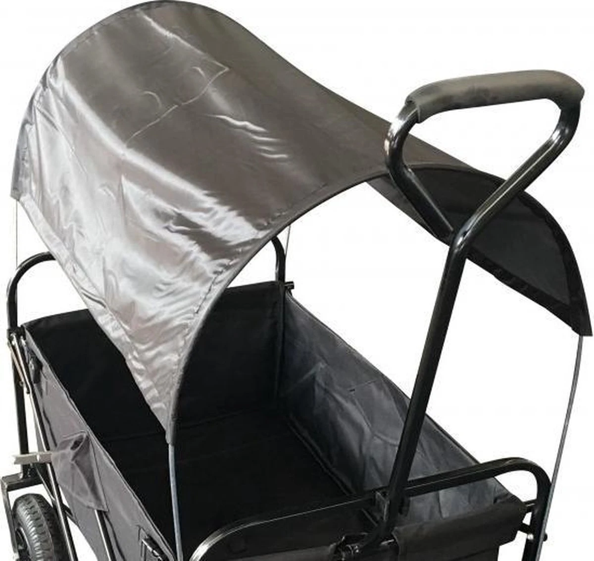 Voordeel van een huif is dat de binnenkant droog blijft met slecht weer. Met één enkele handgreep kun je hem na gebruik opvouwen rondom het stalen frame. Als je de kar weer nodig hebt, klap je ‘m zo uit en is hij klaar voor gebruik!