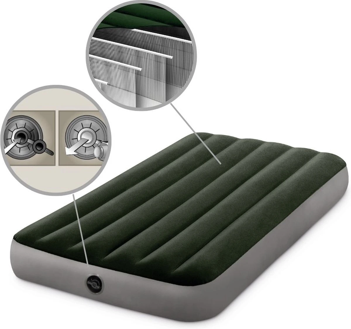 Dit Intex Prestige Downy luchtbed is perfect geschikt om mee te nemen wanneer je gaat kamperen. Met een breedte van 99 centimeter biedt dit luchtbed ruim voldoende plaats voor één persoon. Een unieke “wave-beam” constructie zorgt ervoor dat oneffenheden in de ondergrond, veroorzaakt door bijvoorbeeld graspollen, niet meer voelbaar zijn. Een goede nachtrust is dus gegarandeerd.