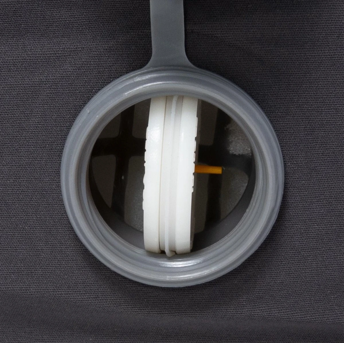 Deze mat heeft een handig groot ventiel waarmee je de mat zowel opblaast als leeg laat lopen. Het ventiel heeft 3 standen: dicht, halfopen of open. De éénwegsfunctie van het ventiel zorgt ervoor dat de lucht bij het opblazen binnen blijft en bij het leeg laten lopen buiten blijft. Je draait ‘m gemakkelijk met je vinger naar de gewenste stand.