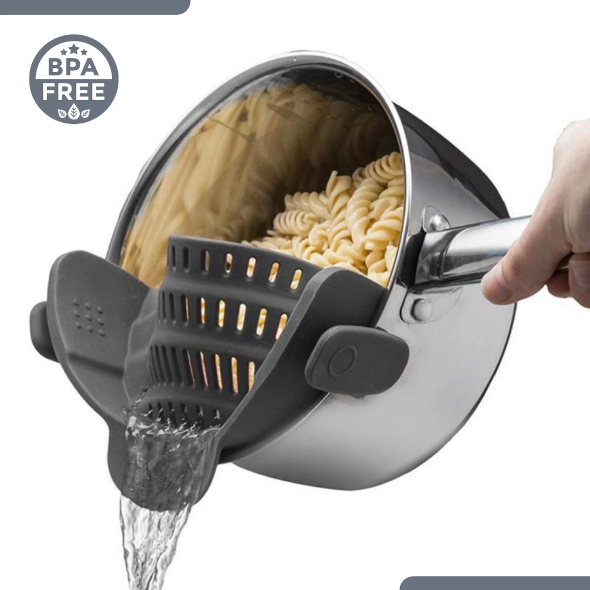 Door de 2 clips kan het vergiet in een pan of bak gehangen worden en blijft het vergiet boven de pan of bak hangen. Hierdoor blijft al het voedsel dat afgegoten wordt op zijn plek en lekker schoon en vers.