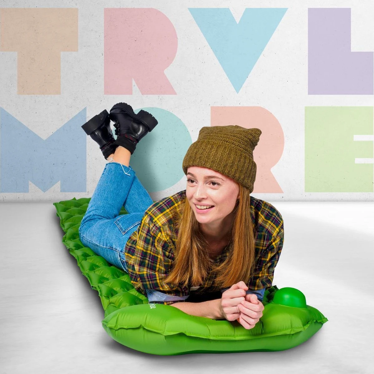 Een comfortabel en compact slaapmatje die makkelijk in je rugzak past? Blaas de TRVLMORE slaapmat in 2 minuten op met de geïntegreerde voetpomp en kruip in bed! Heerlijk comfortabel en gemaakt van zacht en stevig 40D nylon. De slaapmat is 6 cm dik en is afgewerkt met een vochtbestendige TPU coating. Het hoofdkussen heeft een ideale hoogte voor je nek. Het honingraat ontwerp houdt je lichaamswarmte goed vast. Zo kun je er de volgende dag weer helemaal tegenaan!